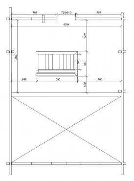 - Конструкция пола - импрегнированные под давлением фундаментные брусья, половые лаги. Шпунтовонаая половая доска 28мм, плинтуса. Конструкция подготовленна для укладки материалов теплоизоляции;