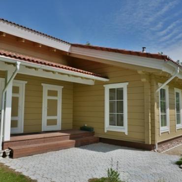 - Наружные и внутренние стены из профилированново клеенново бруса с крестообразными соеденениями или соеденениями городсково типа. Возможны каркасные перегородки;
