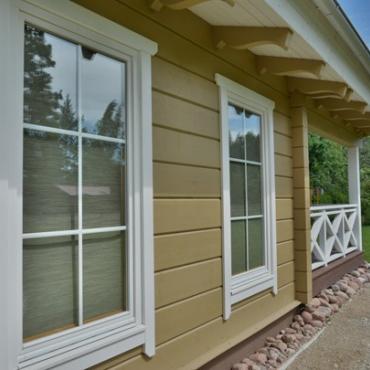 - Деревянные окна и витрины со стеклопакетами. Декоротивные деревянные наличники с обеех сторон;