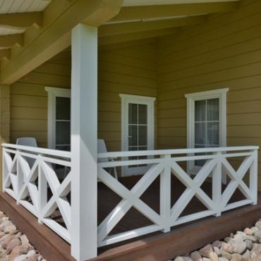 - Конструкция терасы (если предусмотрена в проекте дома) - под довлением импрегнированные брусья, терасовая доска 30мм, перила;