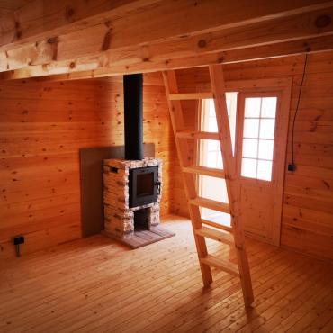 - Приставная деревянная лестница на мансардный этаж;