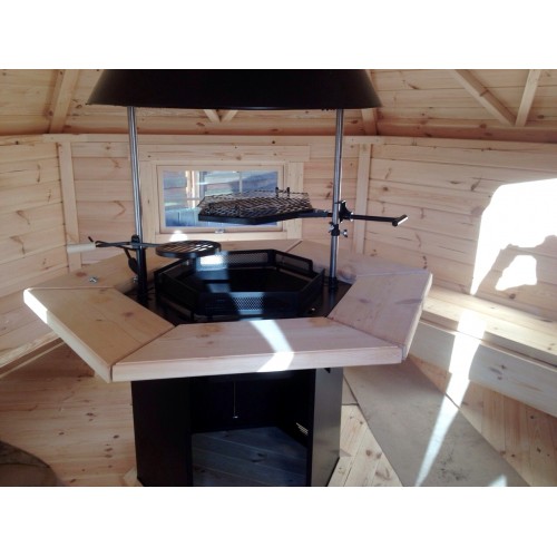 - BBQ grils melnā krāsā ar piestiptinātu koka galdu;