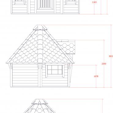- Jumta segums bitumena šindeļi ( krāsa pēc izvēles - sarkana, zaļa, pelēka vai melna);