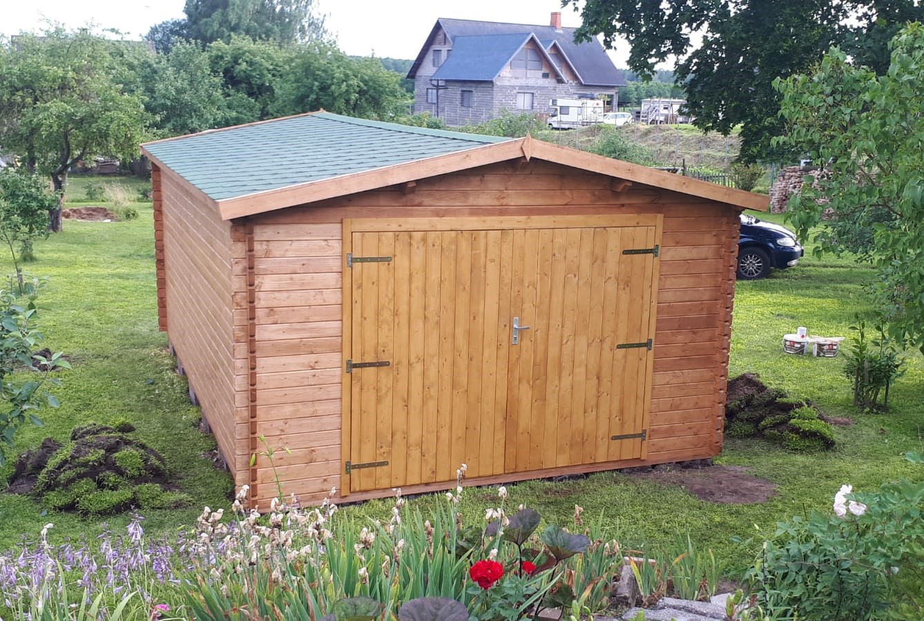 - Стены гаража из профилированного бруса 40 мм (ель);