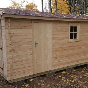 - Пол из 19мм шпунтовaнyой доски с пропитанными фундаментными брусьями 40х60мм +450 Eur
