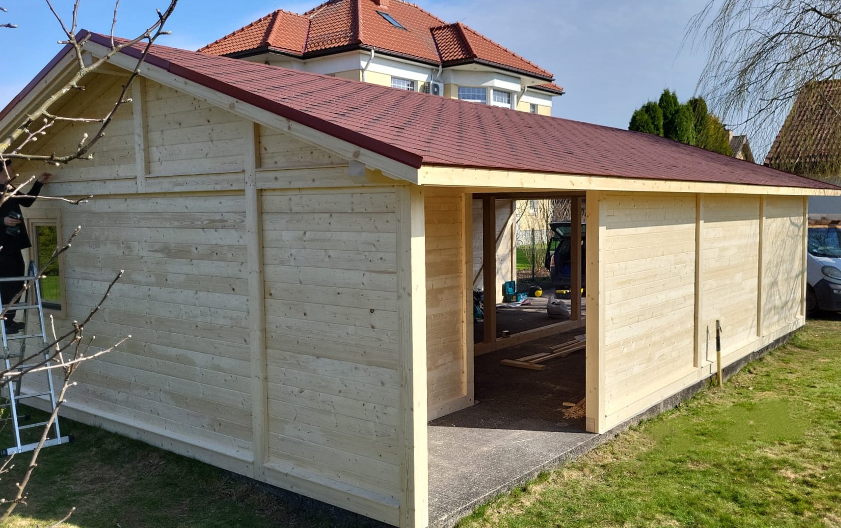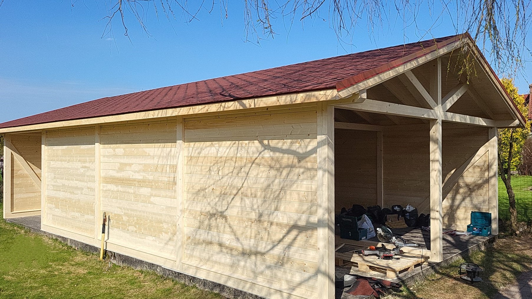 - Навес изготовлен полностью из клеенново бруса (конструкция на 70% прочнее чем из массивново бруса):