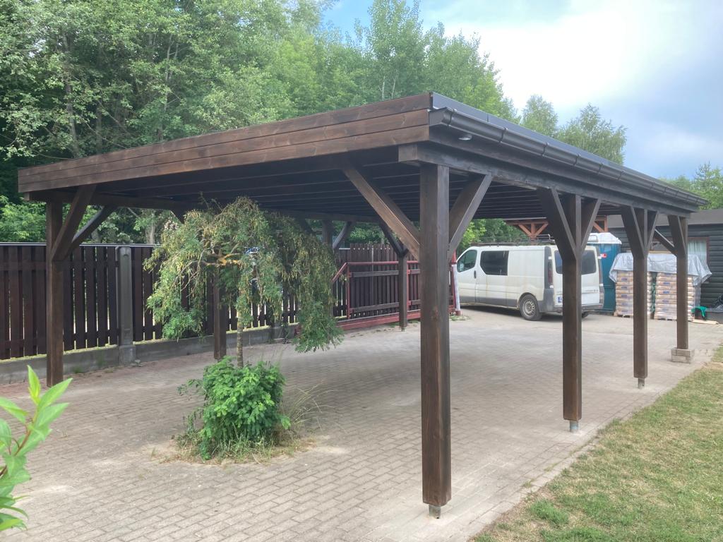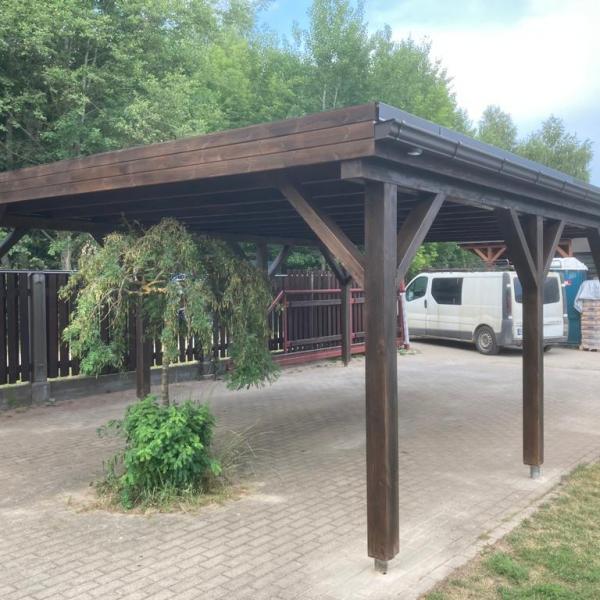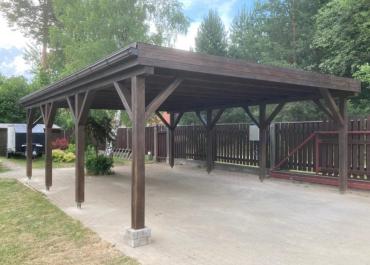 - Каркас навеса изготовлен полностью из клеенново бруса (конструкция на 70% прочнее чем из массивново бруса):