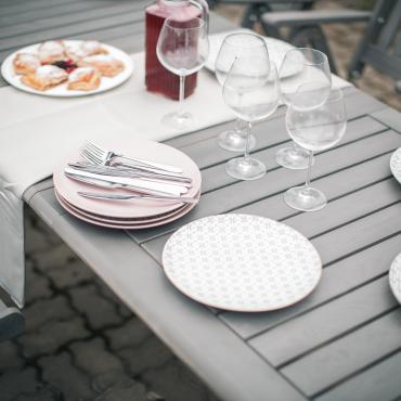 - Этот стол с дополнительной секцией привлечет внимание ваших гостей и предоставит вам ощущение роскоши на террасе или в саду.