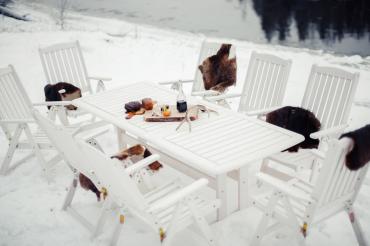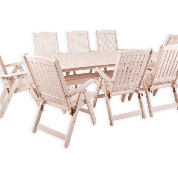 - Раздвижной стол с дополнительной секцией + 8 складных стульев с регулируемой спинкой.