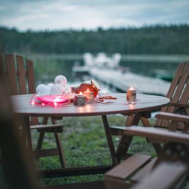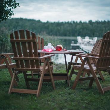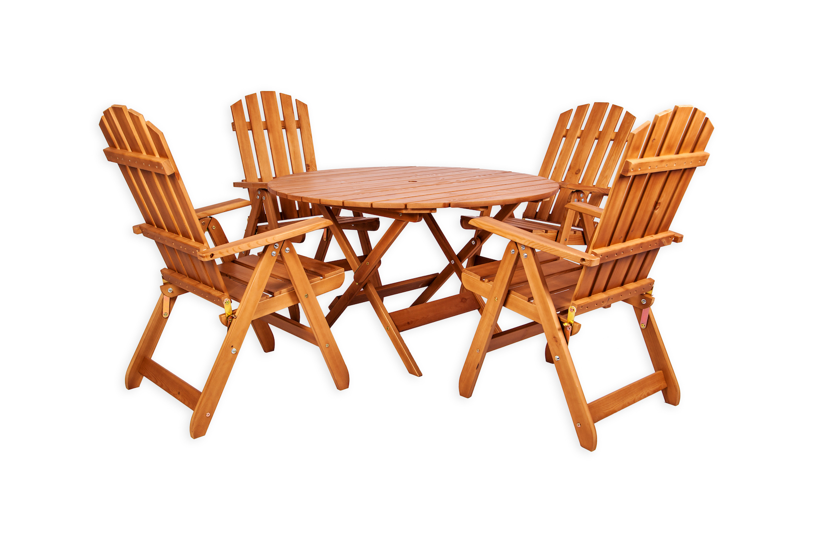 - Круглый раскладной стол + 4 раскладных стульев с подлокотниками и регулируемой спинкой.