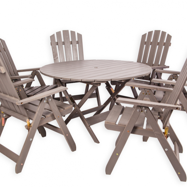 - Круглый раскладной стол + 6 раскладных стульев с подлокотниками и регулируемой спинкой.