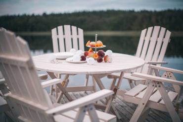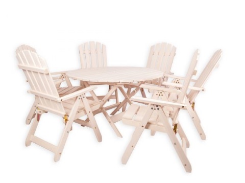 - Круглый раскладной стол + 6 раскладных стульев с подлокотниками и регулируемой спинкой.