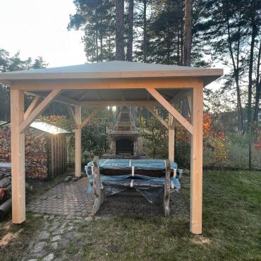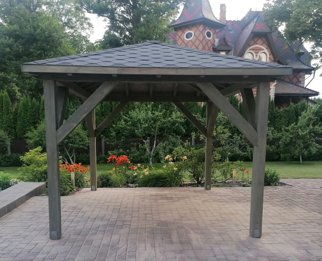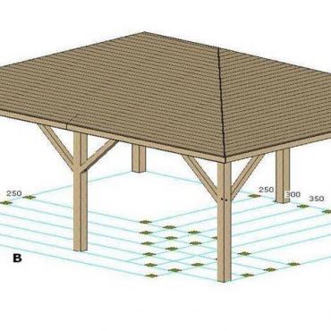 - Опорные столбы 90mm x 90mm из клееного бруса ( 4 шт., 6 шт. или 8 шт.);