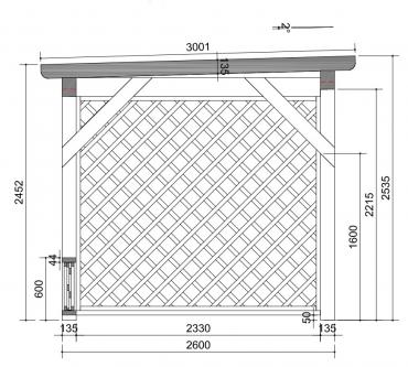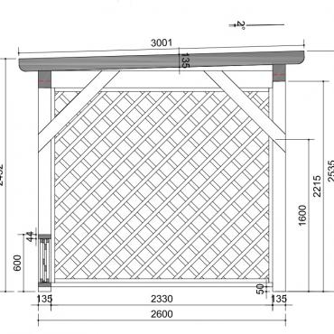 - Навес изготовлен полностью из клеенново бруса (конструкция на 70% прочнее чем из массивново бруса):