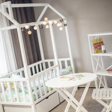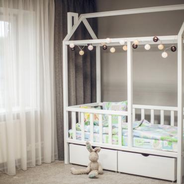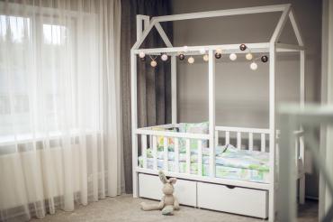- Детская кроватка в виде домика — уютное место, где можно не только комфортно спать, но и найти множество идей для увлекательных игр.
