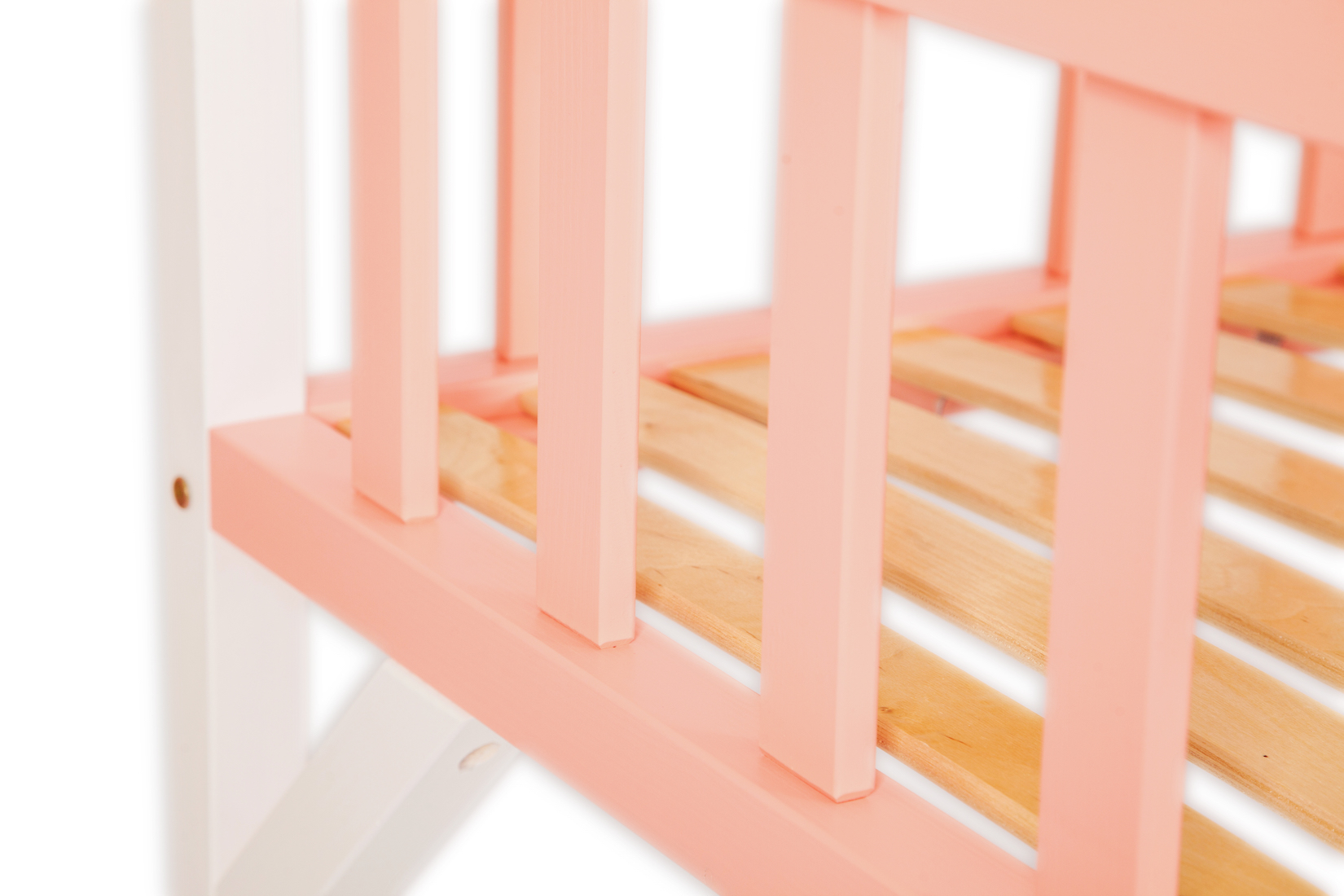 - Детская кровать произведена из массивной, стабильной и безопасной конструкции из сосны.