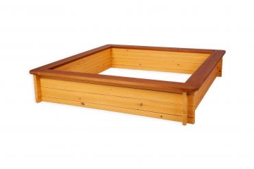 - Песочница 120см x 120см x 20см четырехугольная со съемной крышкой — коричневая/желтая.